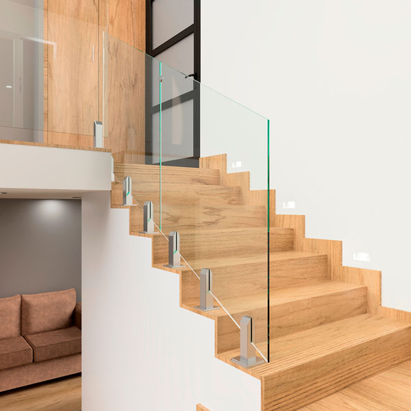 – Finally, in the case of handrails, it has two types of support accessories: the handrail support – glass with a fixed vertical height and another with an adjustable vertical height.