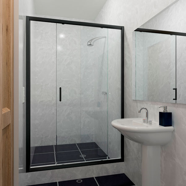 Las puertas de baño Aqua son un tipo de puerta en kit de vidrio templado. Se trata de un producto modular de fácil montaje que se puede instalar para configuraciones a 90° y 180°.