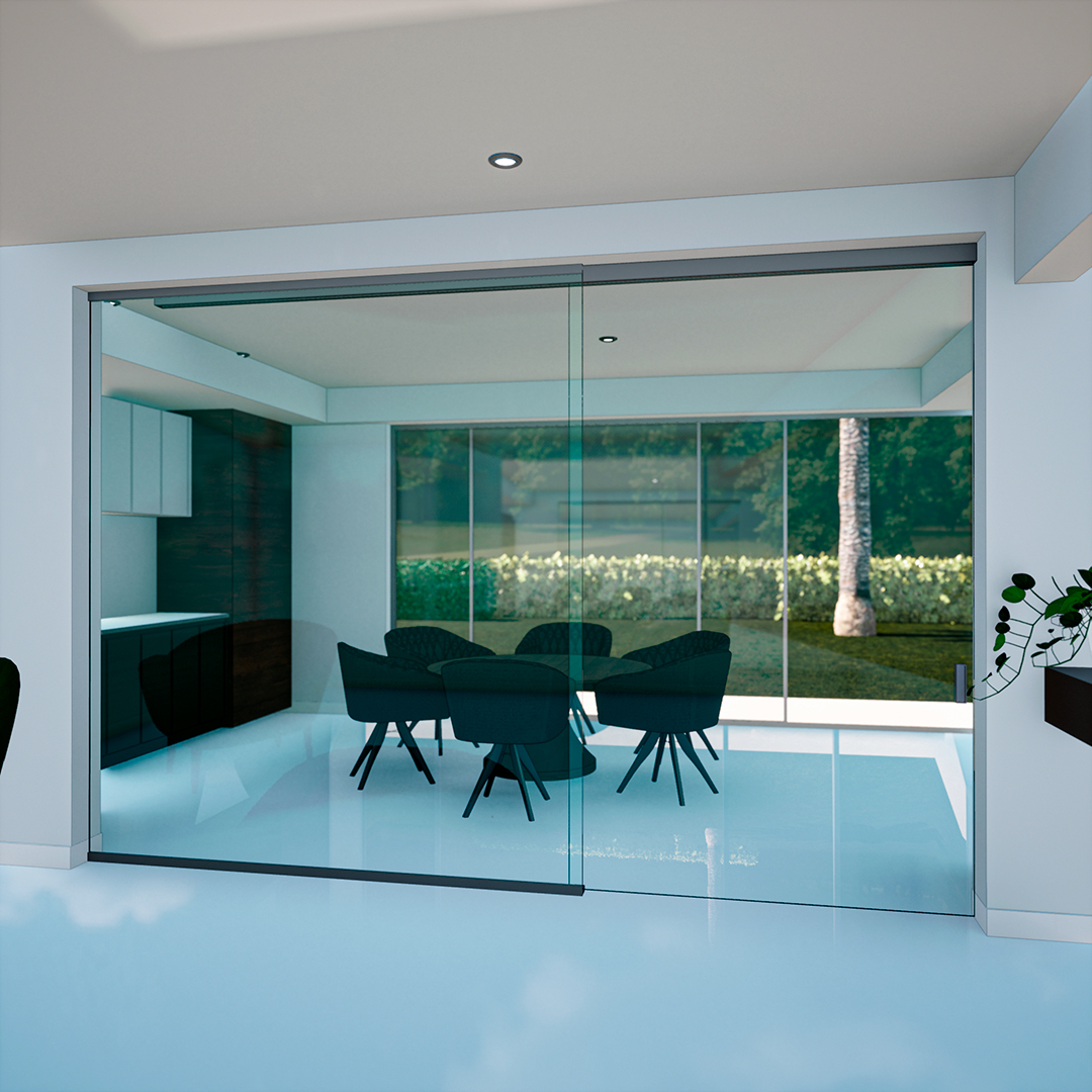 Para quienes buscan una mayor apertura y una sensación de amplitud inigualable, la Tech Slide 2.0 ofrece un diseño de dos paños de vidrio templado. Esta opción es perfecta para integrar espacios y permitir una transición fluida entre áreas interiores y exteriores sin sacrificar estilo ni seguridad.