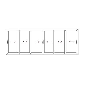 El último tipo de apertura, pero no menos importante, emplea 6 hojas corredizas distribuidas en 3 carriles. En este caso, como en el de 4 hojas en dos carriles, la elección de esta configuración va de la mano del ancho máximo disponible y del diseño planificado.